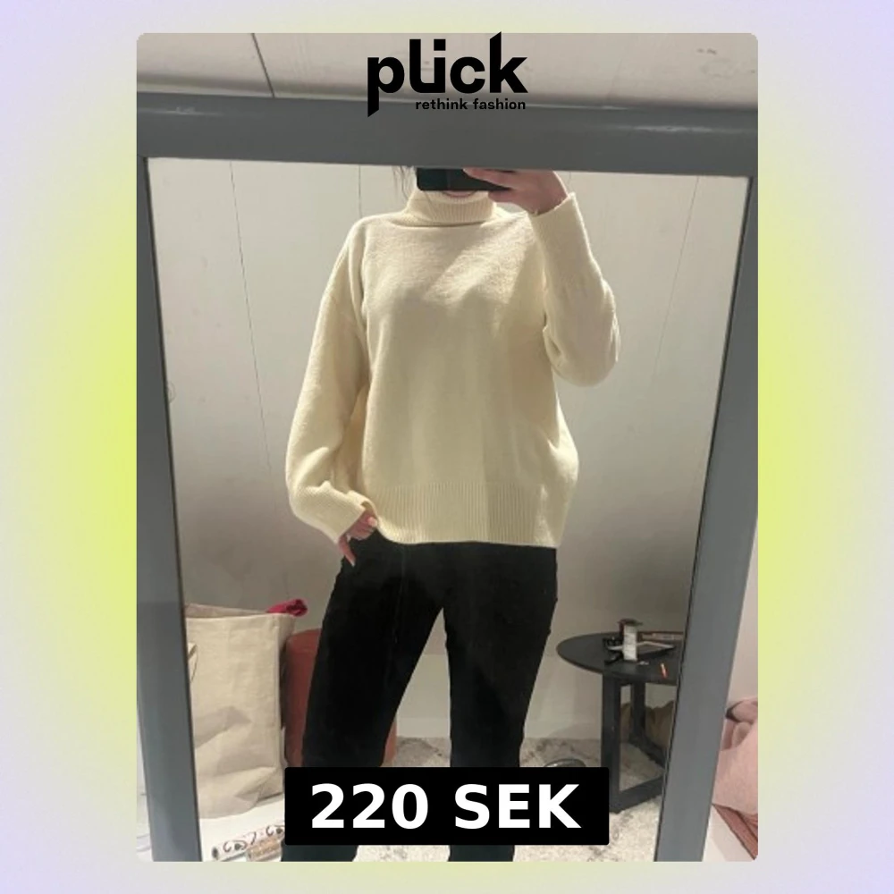Mysig krämvit stickad polotröja med avslappnad passform och breda ribbade muddar. Tröjan har hög polokrage och långa ärmar. Perfekt för lager på lager och enkel att matcha till olika outfits.