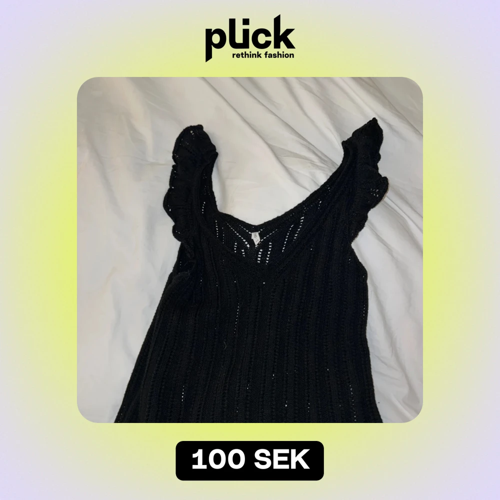 Snygg svart stickad topp från ONLY i storlek XS. Den har en v-ringad design med volangdetaljer vid ärmarna.