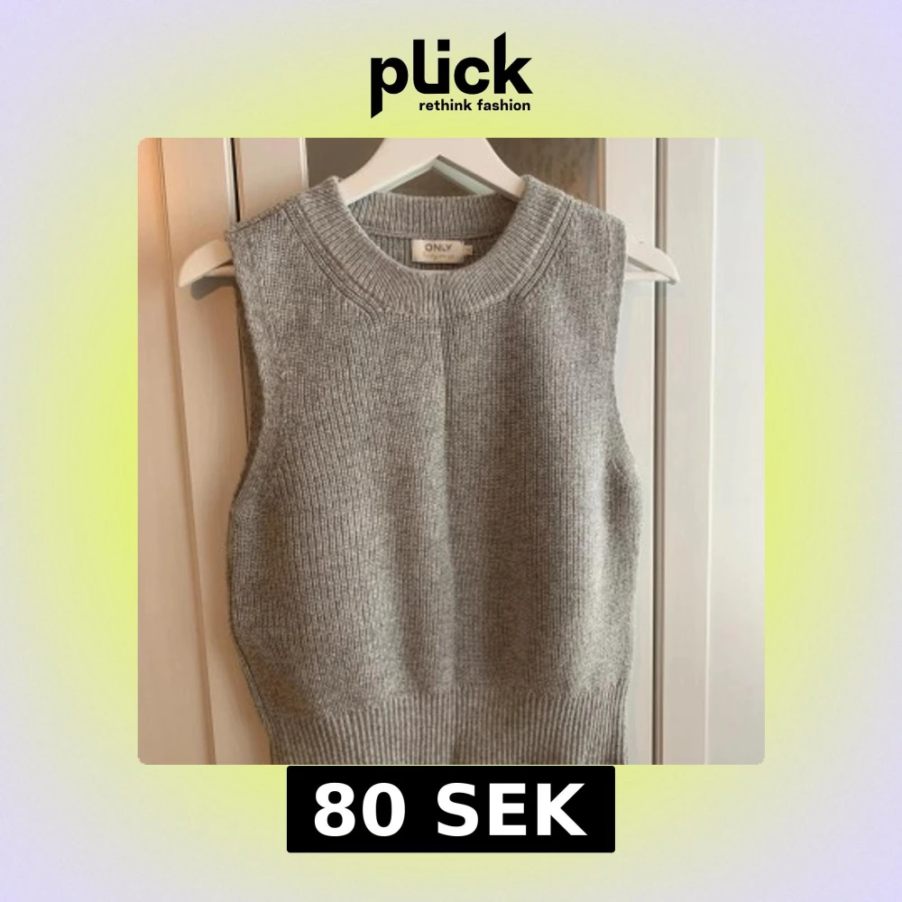 Säljer en stilren grå stickad väst från ONLY. Västen har en ribbad design och är perfekt för lager-på-lager-stil. Den är ärmlös och har en rund halsringning.