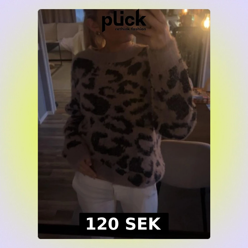 Säljer en beige stickad tröja med svart leopardmönster. Tröjan har rund halsringning, långa ärmar och en avslappnad passform. Perfekt för dig som gillar djurmönstrat och vill ha något både snyggt och bekvämt.
