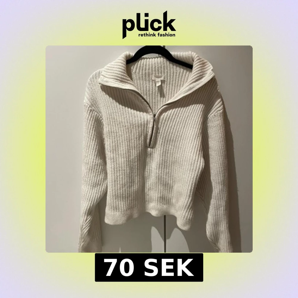 Vit stickad tröja med dragkedja  - Ribbstickad vit tröja från H&M med dragkedja och krage i storlek XS, lite nopprig