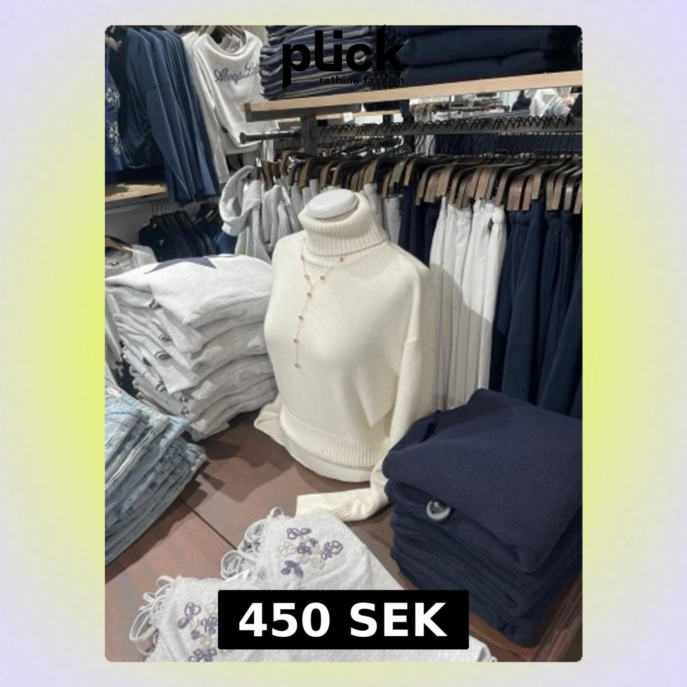 Vit stickad polotröja - Mysig vit stickad polotröja med ribbad design och långa ärmar. Perfekt för kyliga dagar med sin höga krage som håller dig varm. En klassisk och stilren tröja som passar till många olika outfits.