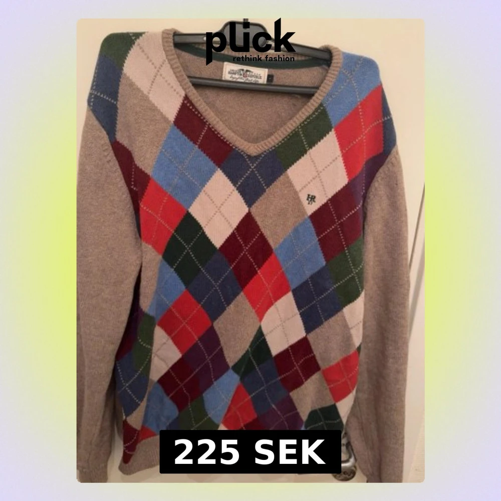 Stickad tröja från Lauren med klassiskt argylemönster i beige, blått, rött, grönt, vitt Rl vinrött framtill. V-ringad hals och långa ärmar. Materialet känns mjukt och tröjan har RL-logga broderad på bröstet. Perfekt för en preppy look.