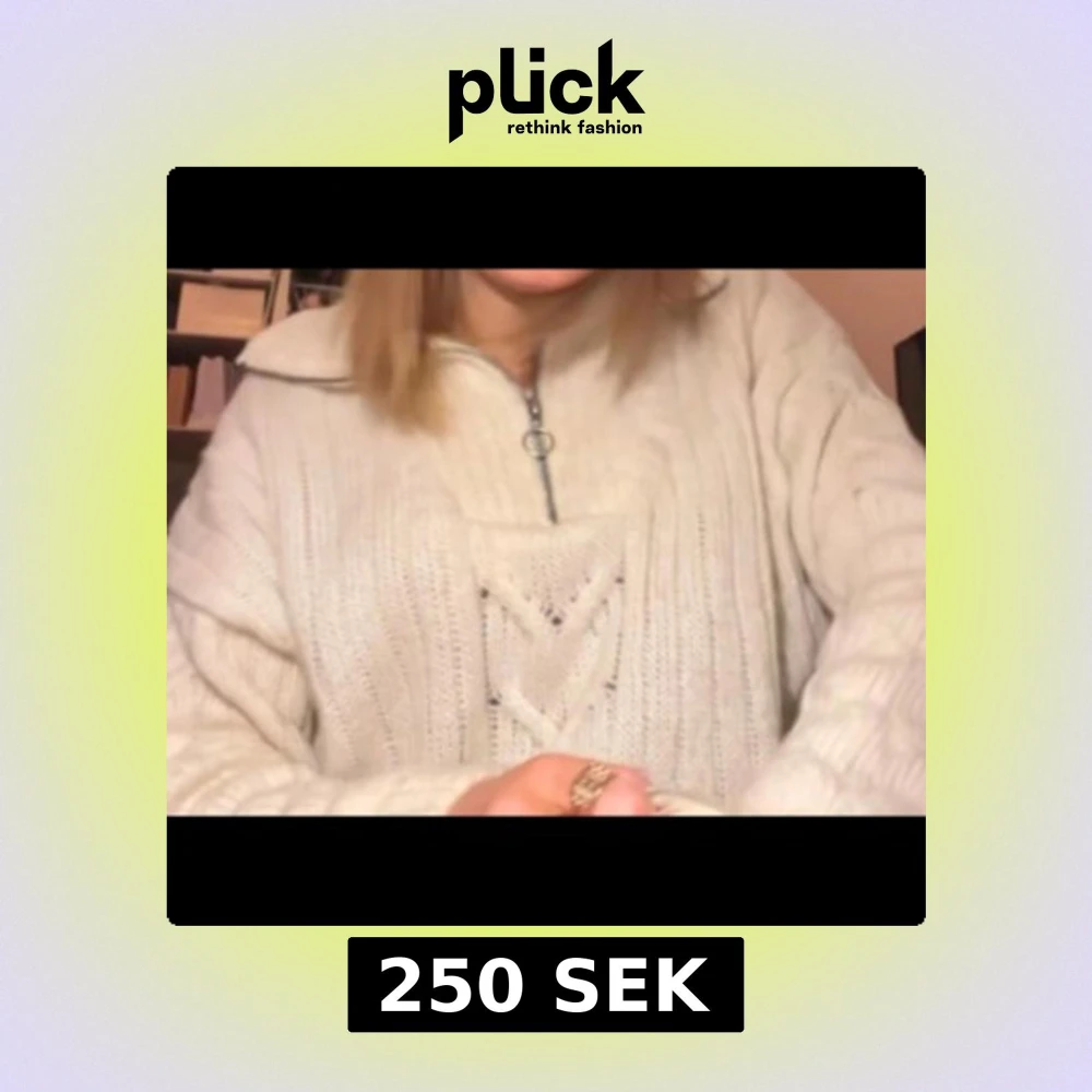 Mysig beige stickad tröja med dragkedja och ribbade detaljer. Perfekt för kyliga dagar med sin bekväma passform och stilrena design.