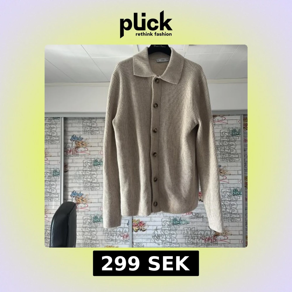 Snygg beige stickad kofta från MNG med klassisk krage och knappar framtill. Koftan har lång ärm och är ribbstickad för en clean och stilren look. Perfekt att slänga över en t-shirt eller linne när det blir lite kyligt.