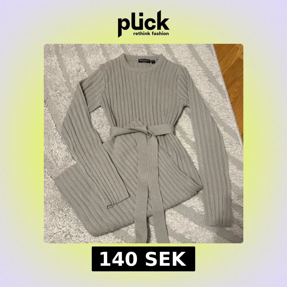 Supermysig grå stickad klänning från Brave Soul med ribbad struktur och matchande bälte i midjan. Långärmad och med rund hals, perfekt för lager på lager under kyliga dagar.