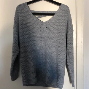 En grå stickad tröja med detalj bakom ryggen och hål vid framsidan av tröjan . Storlek S och stretchig .