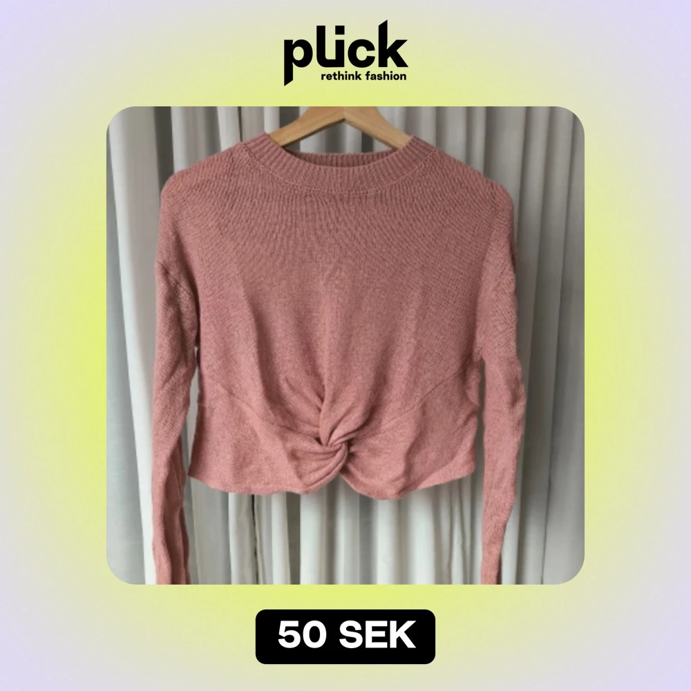 Stickad tröja med knytdetalj på magen. Använd men i bra skick. Storlek M men skulle mer säga att det är en S