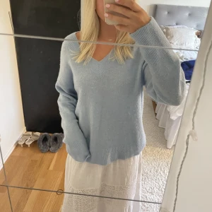 Superfin ljusblå stickadtröja💕kommer inte till användning längre, lite nopprig men inget man tänker så tydligt på, perfekt passform, skriv för fler bilder eller frågor💕
