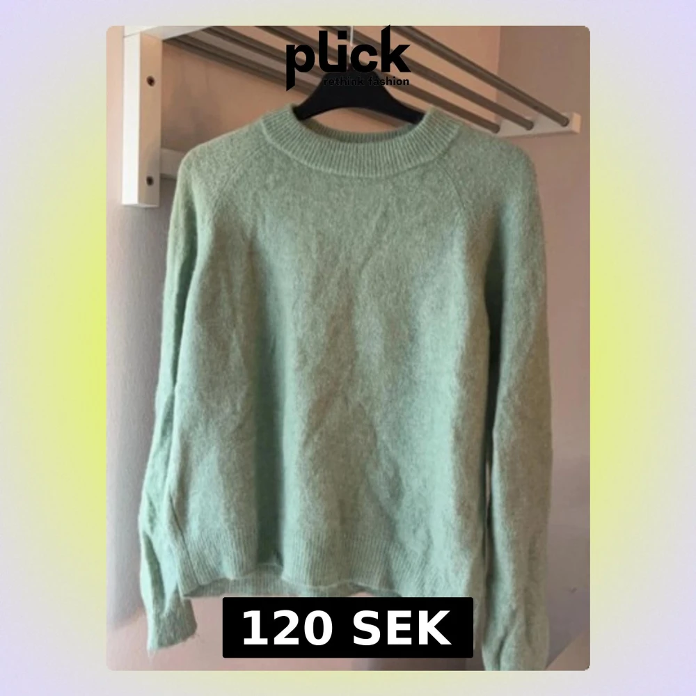 Mysig mintgrön stickad tröja med rund halsringning och långa ärmar. Tröjan har ribbstickade muddar vid hals, ärmslut och nederkant. Perfekt för lager på lager och ger en fräsch look till din outfit.