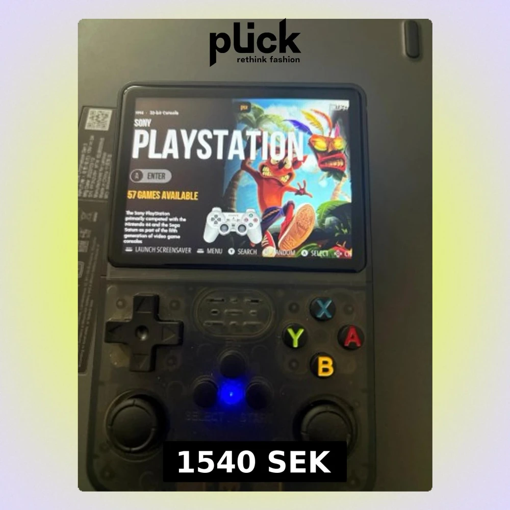Säljer en portabel retro spelkonsol i svart plast med genomskinlig finish. Konsolen har en stor färgskärm, styrkors, två joysticks och färgade knappar (X, Y, A, B). Perfekt för att spela klassiska PlayStation- och Nintendo-spel direkt i handen. Över 23,000 spel ifrån många och nästan alla tillverkare den är använd max 5 gånger och den funkar hur bra som helst pris kan diskuteras vis snabb affär
