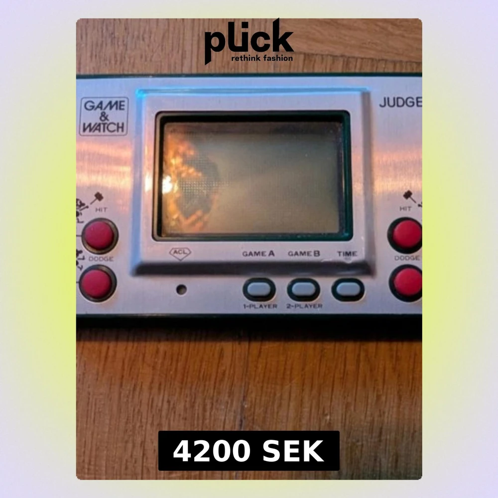 Retro Game & Watch Judge från Nintendo. Handhållen spelkonsol i silverfärgad metall och plast med röda knappar och svart ram runt skärmen. Klassisk LCD-display och tydliga spelkontroller för två spelare. Perfekt för samlare eller nostalgiker.