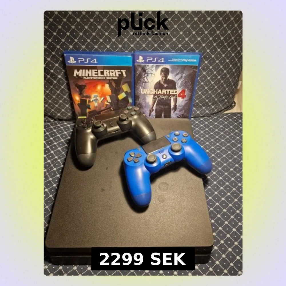 Jättefin skick ps4 slim med 2 kontroller och 2 spel. Du får även en 27 tum TV på köpet. Ps4 är nyligen rengjord på insidan så att allt är smidigt. Kan köra i timmar utan att bli för varm. Alla kablar som behövs följer. Finns även möjlighet att frakta ifall man vill. Finns att hämta upp I Norrköping
