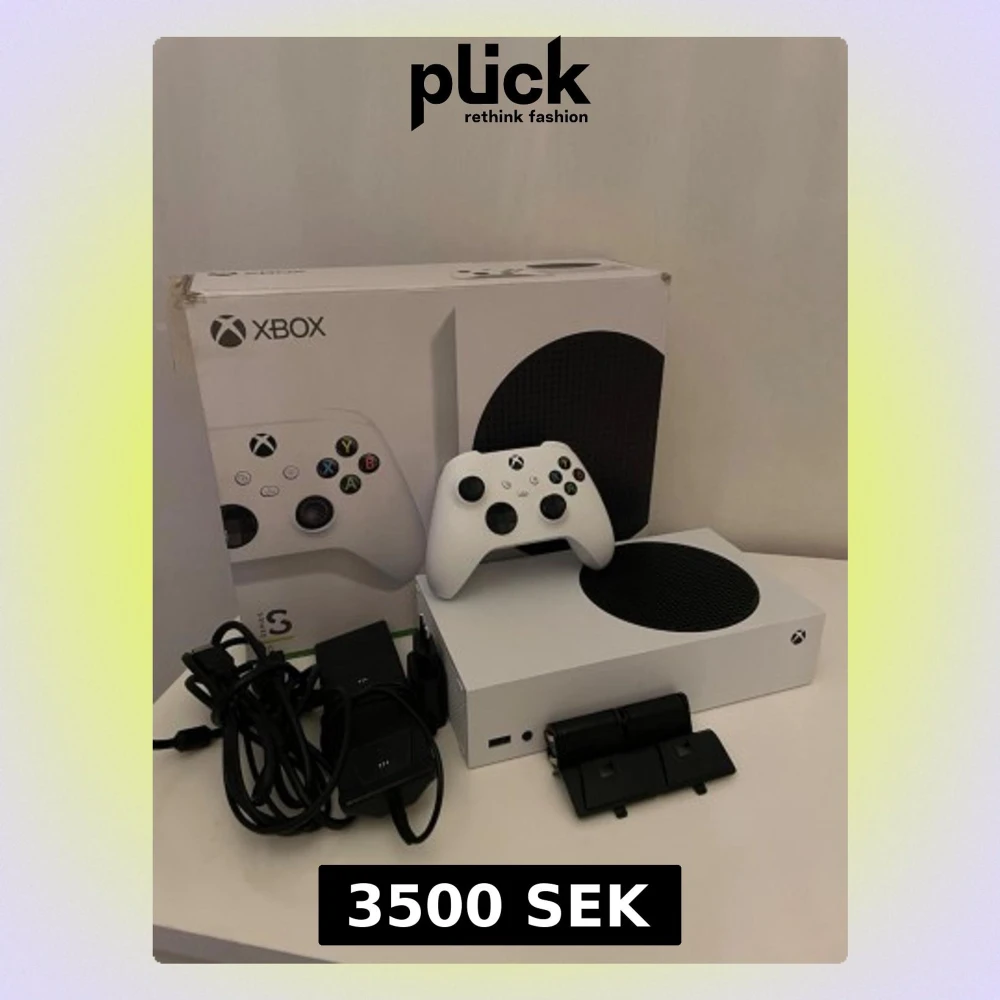 Hej jag säljer en Xbox series s som funkar utmärkt utan några problem det ör bara att starta den och spela och som ni ser i bilden så följer det med en Xbox och en kontroll och den orginala kartong och det följer med en laddningstation för kontrollen och som ni ser så följer det med två batterier som används till kontrollen om laddningen tar slut det är bara att lägga den i laddningstationen och den blir fulladdad om du är intresserad elelr har några frågor tveka inte att skriva!
