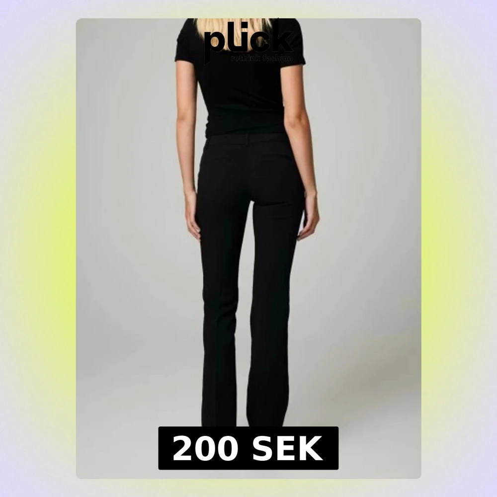 Kostymbyxor från bikbok i modellen VERA regular. Har sprettat upp sömmen längst ner så de ska bli lite längre men det ser bra ut (se sissta bilden). Har även sytt in midjan lite men det gåt enkelt att klippa bort å då går de tillbaka till ursprunglig storlek.