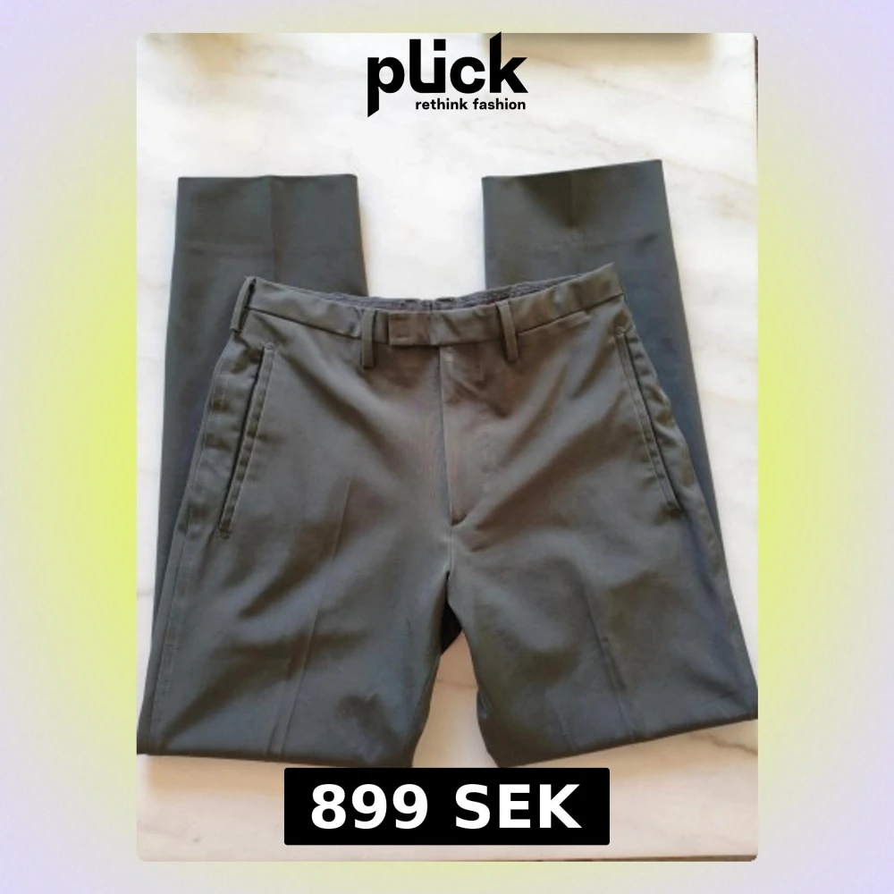 Säljer ett exklusivt par Prada Technostretch byxor i perfekt skick! Dessa byxor kombinerar lyx, komfort och stil i en fantastisk design.Storlek: 44 Slim Fit 70 cm i omkrets och 95 cm långa. Färg: Antracit en elegant mörkgrå färg. Gjorda av 90% polyester 10% spandex.Materialet känns mjukt och har en lätt stretch för extra komfort.