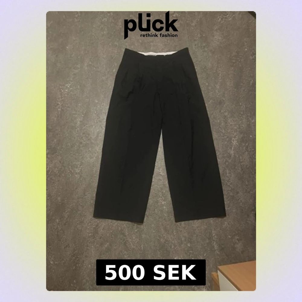 Säljer ett par svarta kostymbyxor från Weekday lös passform med veck. Använda max 6 gånger i mycket bra skick. Baggy passform med pressade veck som ger en mer dressad känsla. Säljer då de inte passar mig längre.