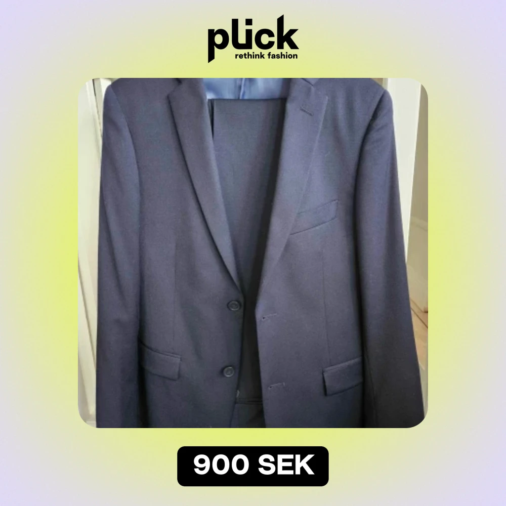 En snygg marinblå kostym. Endast använd vid enstaka tillfällen. Storlek 46 regular i kavajen Storlek W29 L32 i byxorna