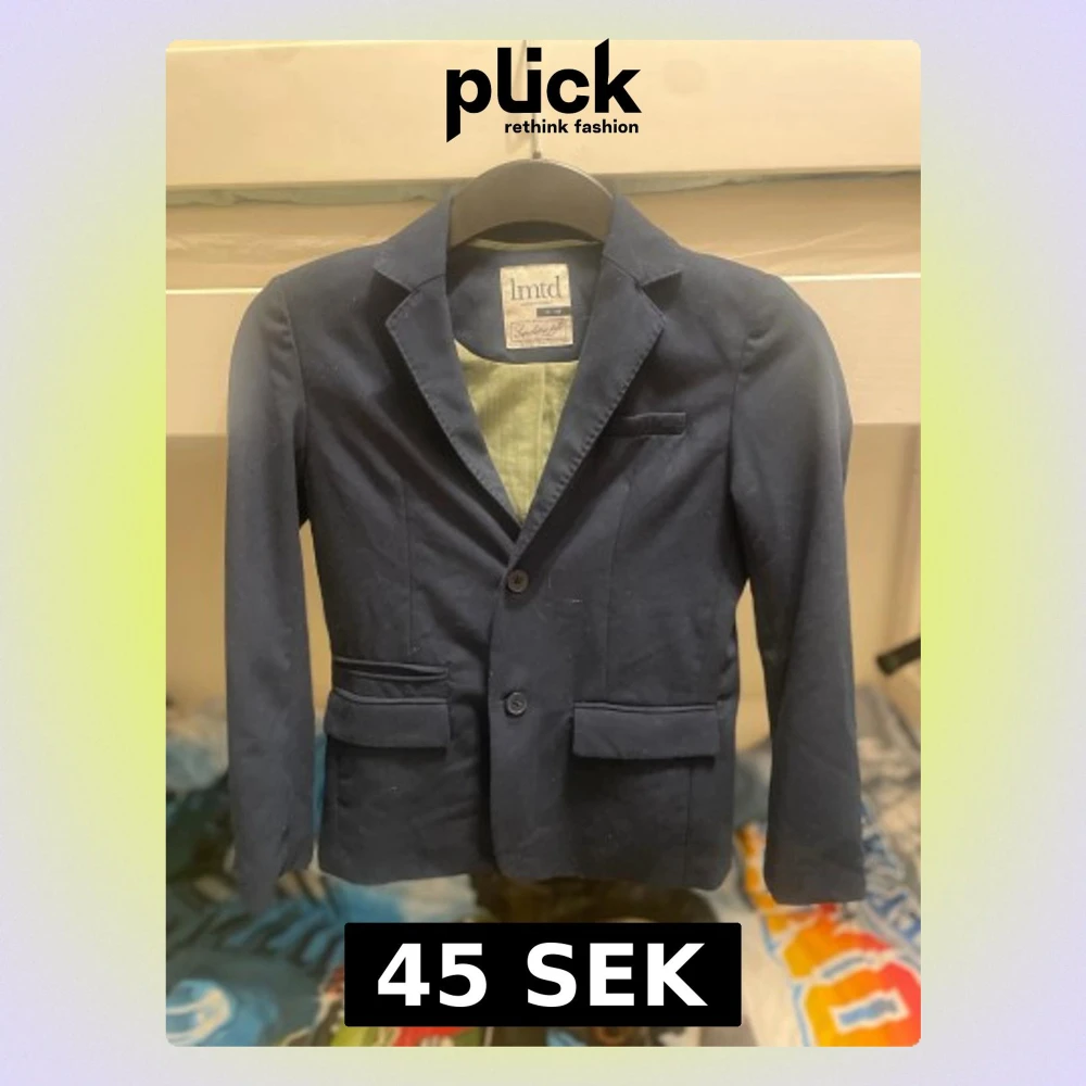 Snygg mörkblå kavaj från LMTD med klassisk krage, två knappar framtill och tre dekorativa knappar vid armslutet. Fodret är ljusgrönt och jackan har två fickor med lock. Perfekt för dig som vill ha en stilren och tidlös look. Barn till pojkar