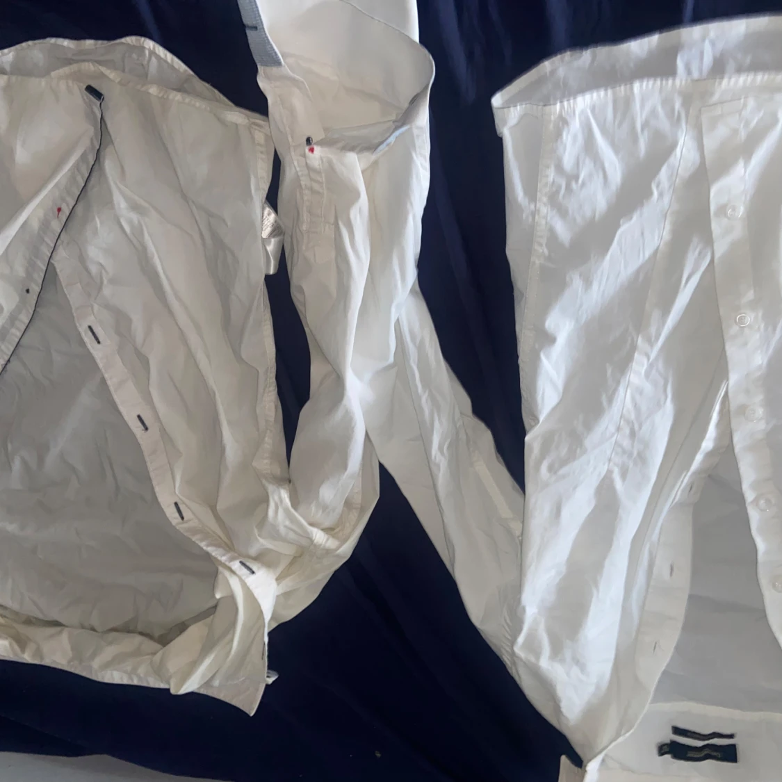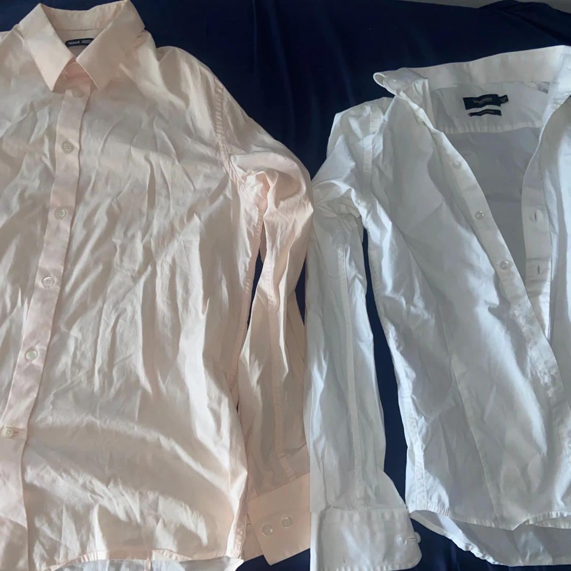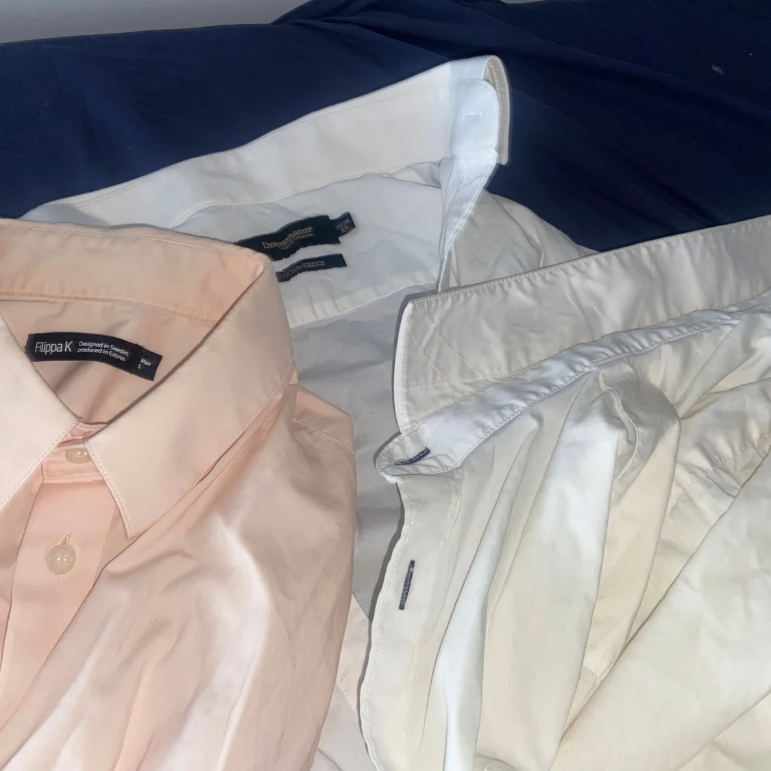 3 skjortor den rosa är storlek L från filippa K. Den vita från Dressman storlek XS. Den andra vita med inget märke från HM storlek S. Totalt kostar dem runt 1000 totalt. Inga repor eller hål.
