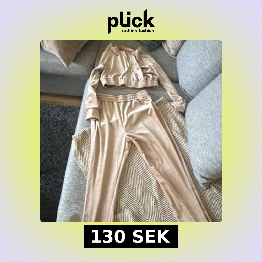 Står 38 men jag säger 36 . Säljer ett snyggt tvådelat set i beige sammet. Setet består av en croppad jacka med dragkedja och långa ärmar samt matchande byxor med resår i midjan. Perfekt för dig som gillar mjuka material och en chill look.