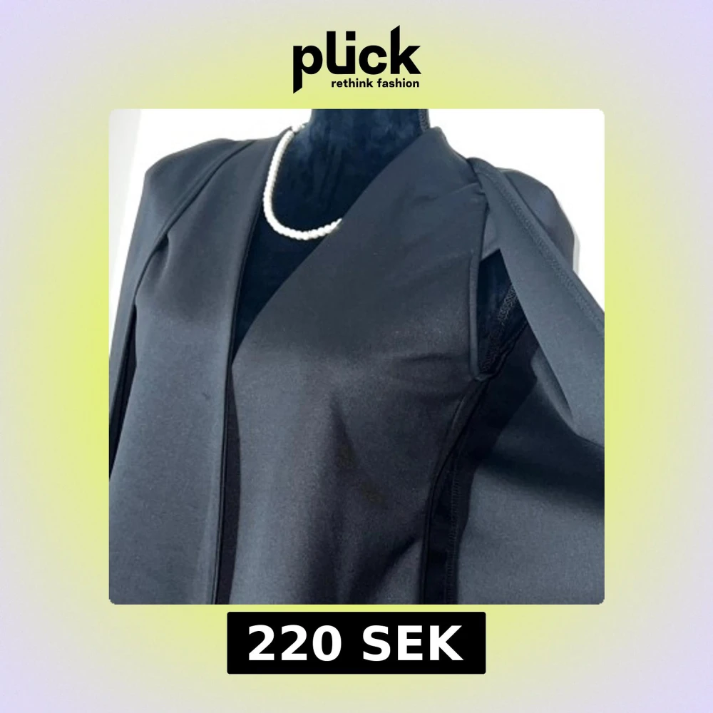 Elegant svart kavaj med unik cape-design. Perfekt för en stilren look. Tillverkad i ett mjukt och följsamt material som ger en snygg siluett. Passar utmärkt till både formella och mer avslappnade tillfällen.