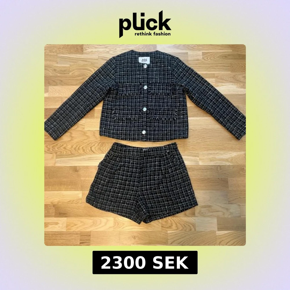Märke: Twist & Tango Shorts: storlek 36 Blazer: storlek 34 Nyskick Övrig info: shortsen har fickor, man stänger shortsen med en dragkedja och knäppning på sidan. Extra knapp till blazern finns. Fler bilder kan skickas vid förfrågan. Nypris för blazer: 2299kr Nypris för shorts: 1199kr