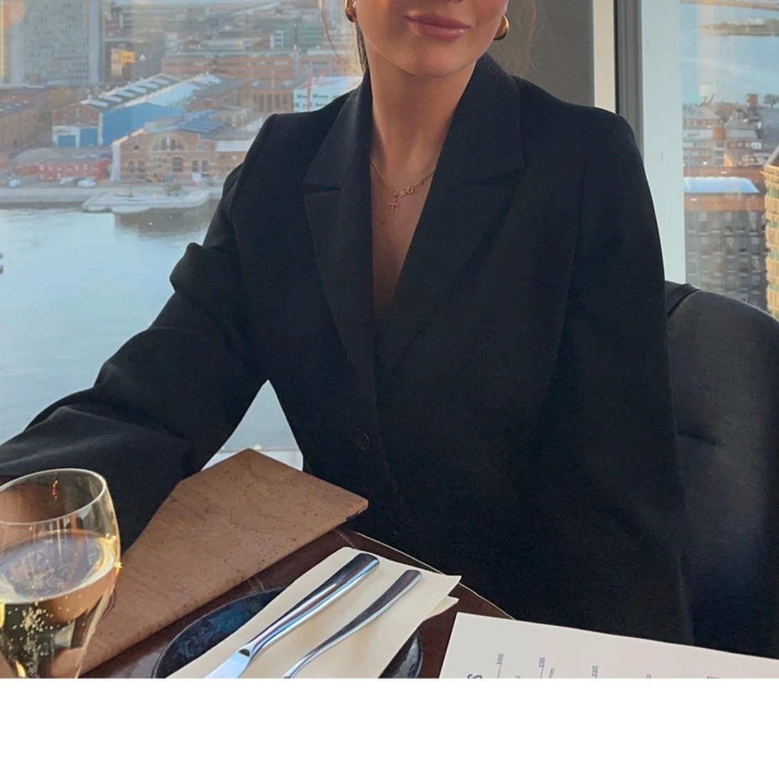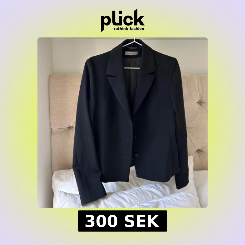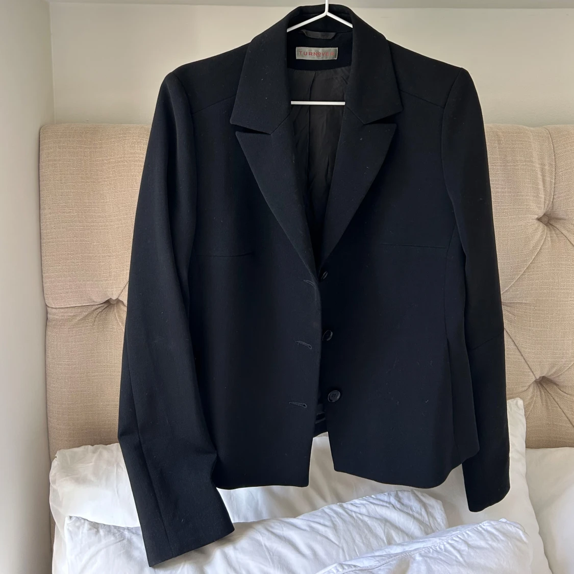 En kort kavaj från turnover, väldigt fin, passar mig som har storlek 36 men blir en lite mer oversized fit. Den är figursydd.
