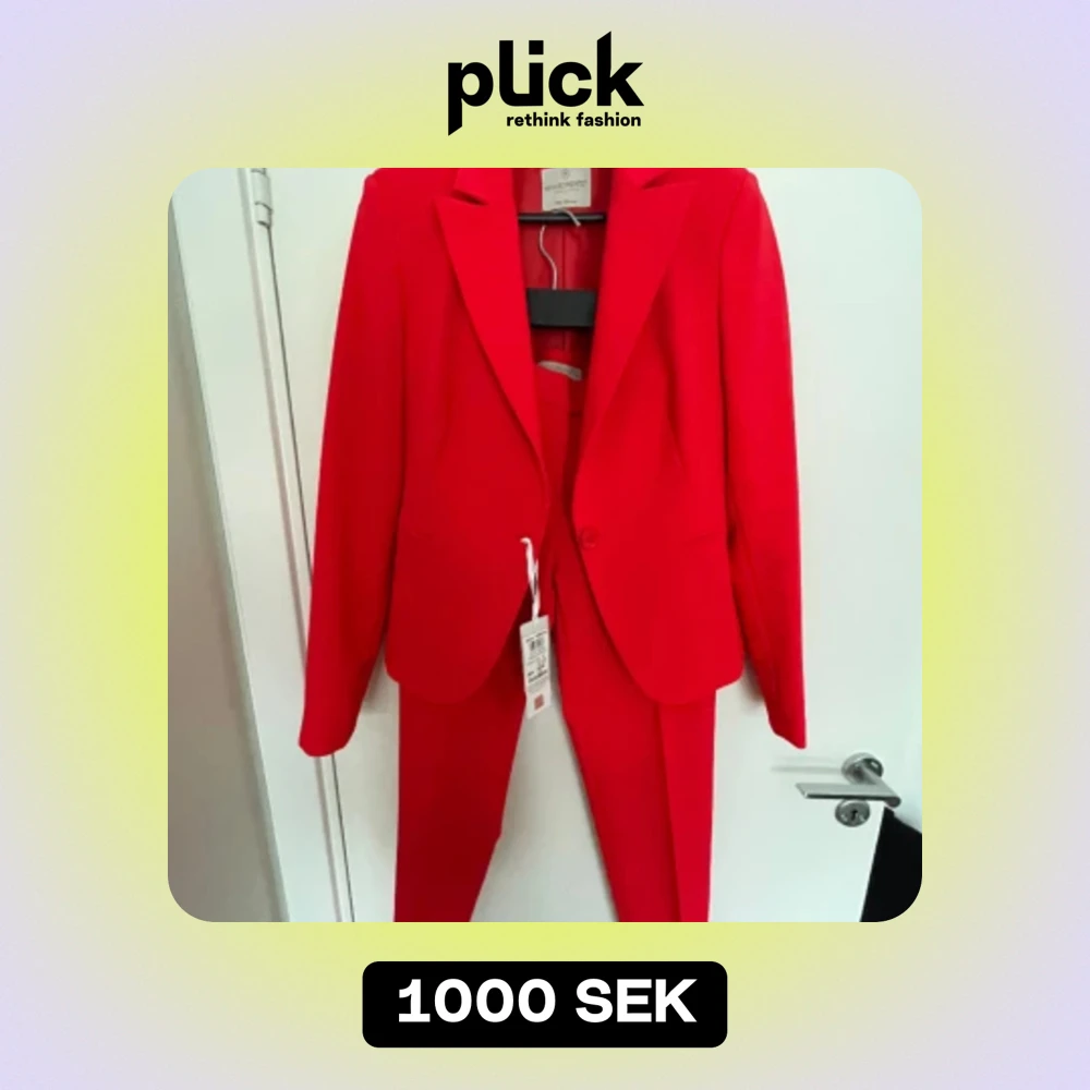 Figursydd kavaj med tillhörande cigarettbyxor corallröda köpt på Monti för 3 år sedan . Aldrig använda. Nypris 2500kr