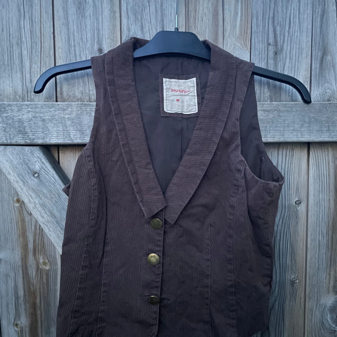 Snygg brun väst i manchester från Springfield med klassisk krage och tre knappar framtill. Västen har en rak passform och är perfekt att styla över t-shirt för en cool look.