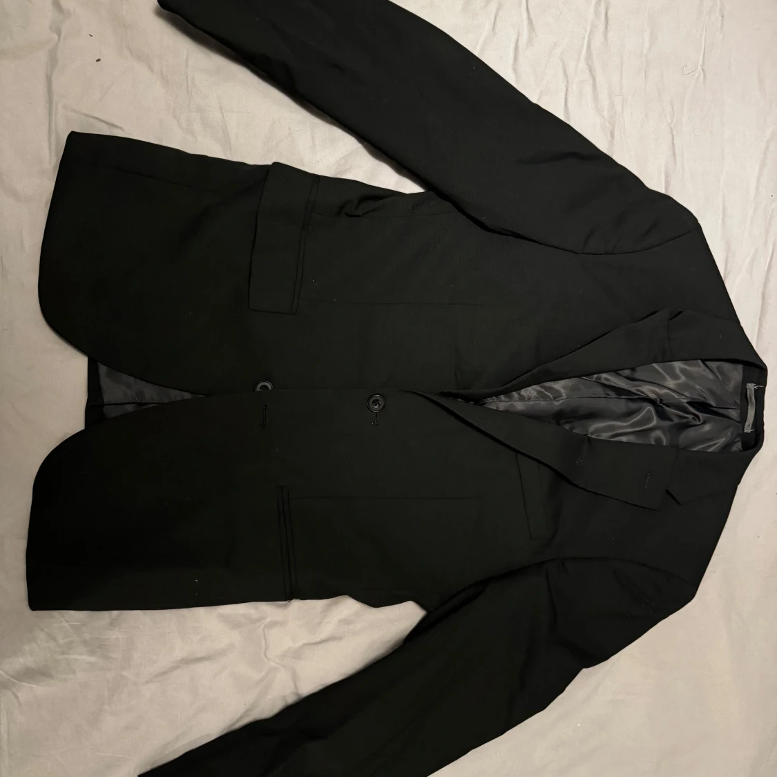 Klassisk svart kavaj med en tidlös design. Den har en figursydd passform och är perfekt för både formella och avslappnade tillfällen. Kavajen har en traditionell krage, knäppning fram och praktiska fickor. Skick: bra skick Storlek: 44 Ord. Pris: 999 SEK Din stil: spara inlägget så du inte missar denna kappa Inte din stil: Kolla min profil. Du kommer hitta något för alla kön och åldrar.