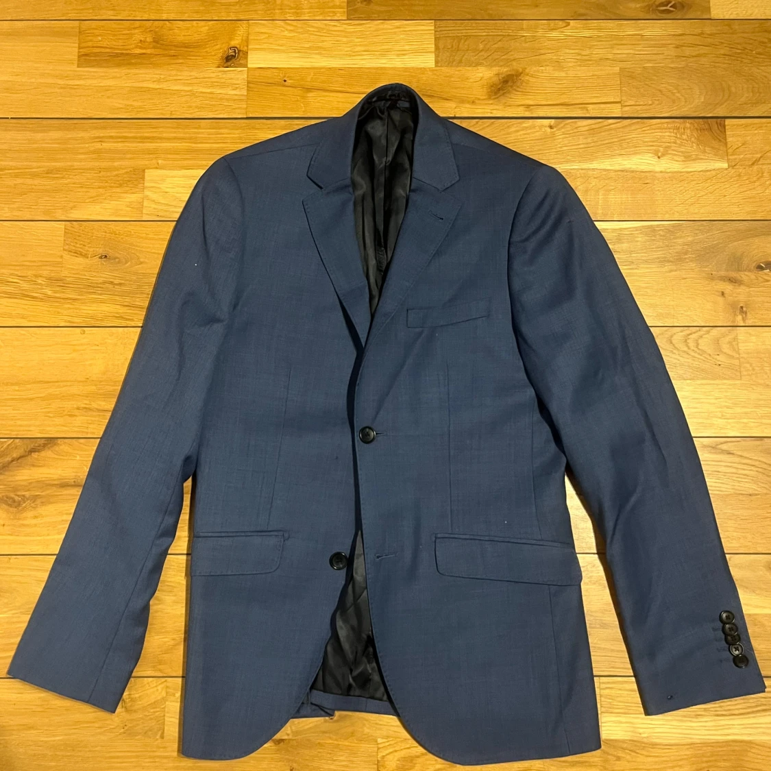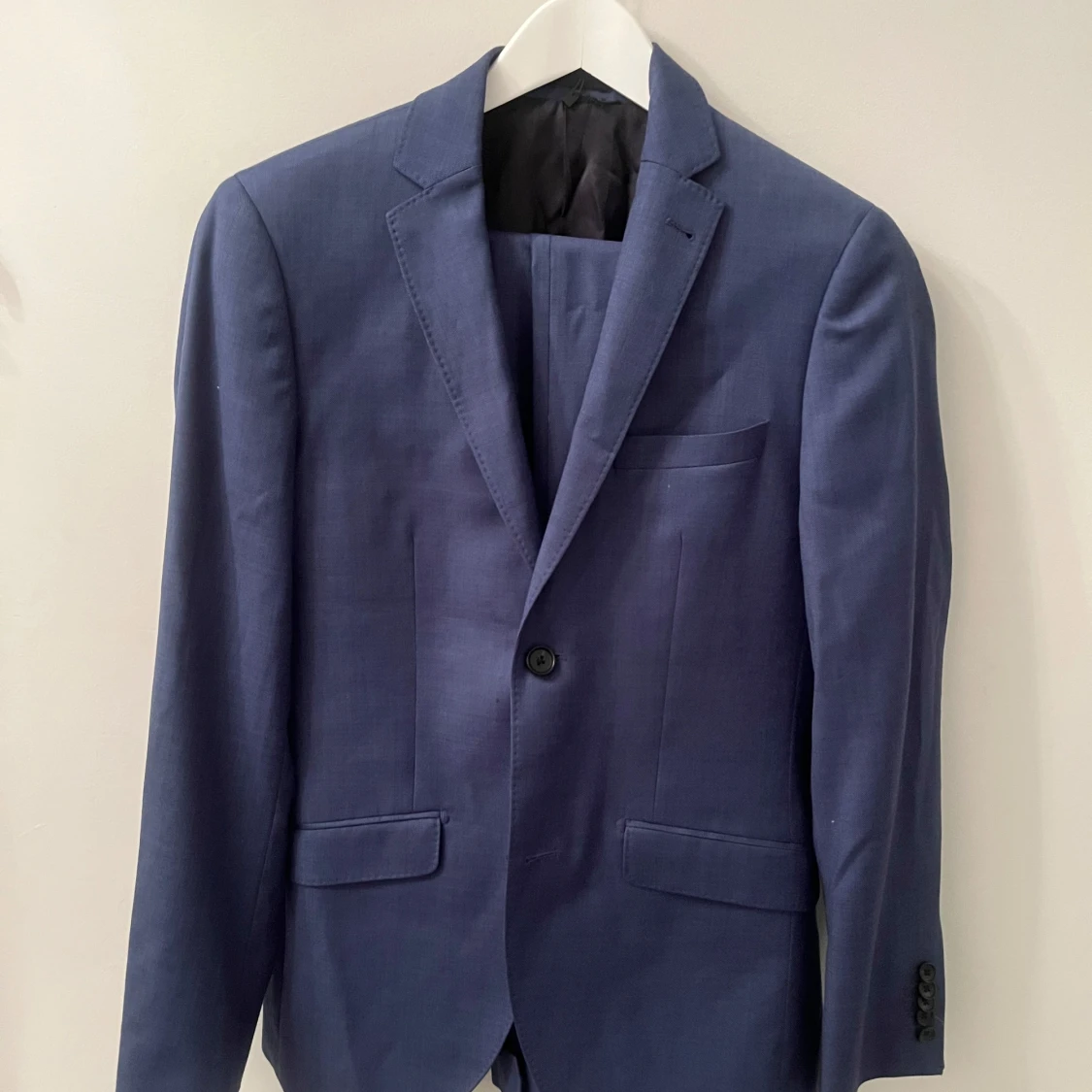Blå kostym från Riley i storlek 44 motsvarande S/M, i bra skick.
