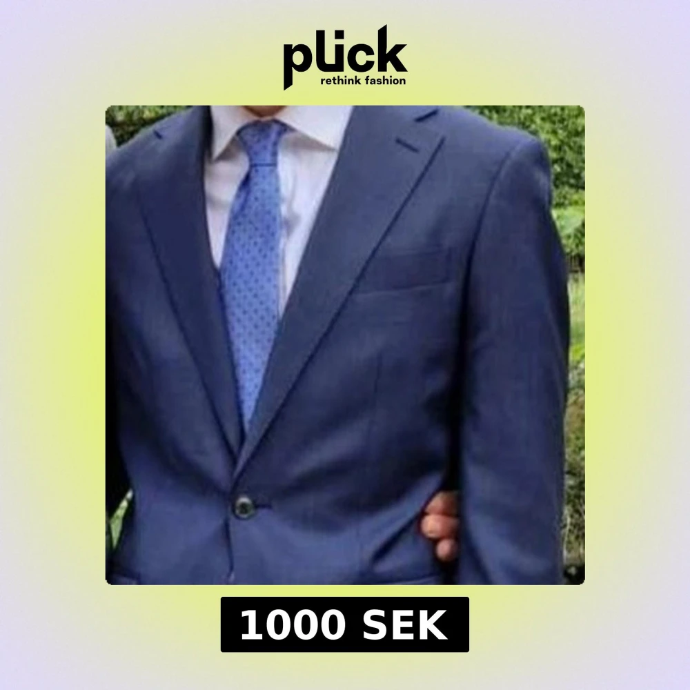 Snygg kostym i slim fit med matchande kavaj och byxor från Volt. Kavajen har två knappar framtill, fickor med lock och smal passform. Perfekt för bal eller student. Använd vid ett tillfälle av sonen förra sommaren så i nyskick! 😊