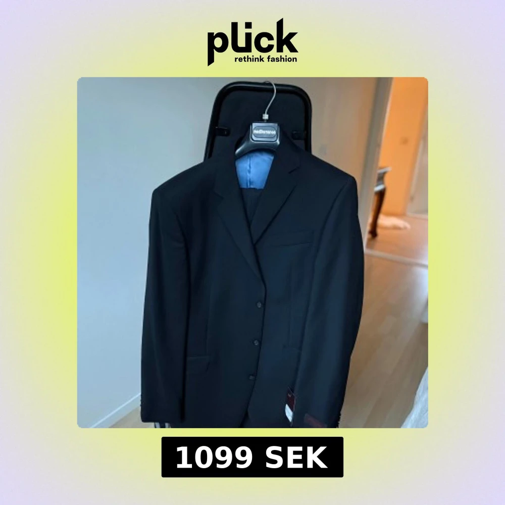 Stilren svart kostym från det klassiska modemärket Pierre Cardin. En tidlös design med snygg passform och elegant ljusblått innerfoder. Perfekt för både formella tillfällen och fest. Storlek: 50 Färg: Svart Märke: Pierre Cardin Paris Material: 100% ull Nypris: ca 3995 kr Skick: Helt ny med tags kvar