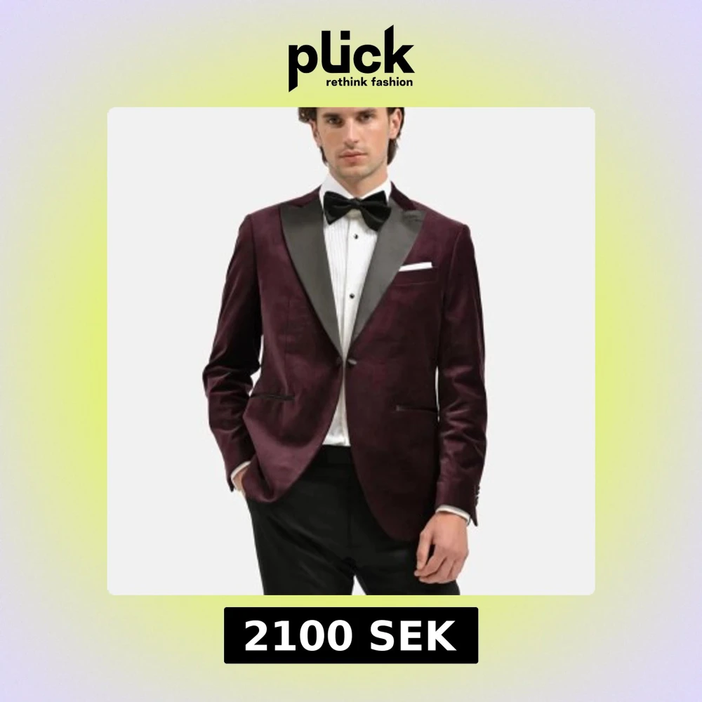 Säljer en elegant vinröd sammetskavaj med svarta slag och klassisk passform. Kavajen har två framfickor, bröstficka och knappar vid ärmslut. Perfekt för festliga tillfällen och bal. Har endast använt den en gång (bröllop). Ord.Pris 2999,00kr.