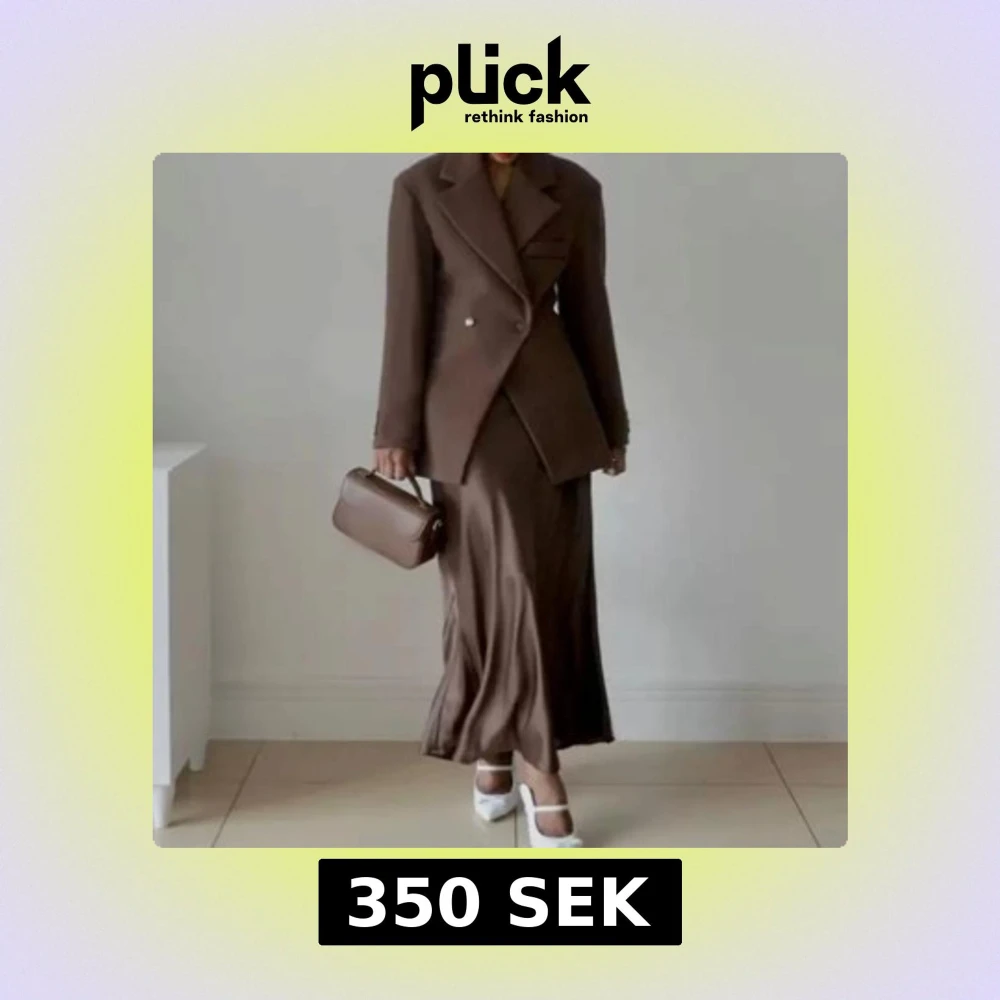 Elegant brun kavaj med dubbelknäppning och klassisk krage. Perfekt för en stilren look, oavsett om du bär den med kjol eller byxor. Kavajen har en tidlös design som passar till många tillfällen.