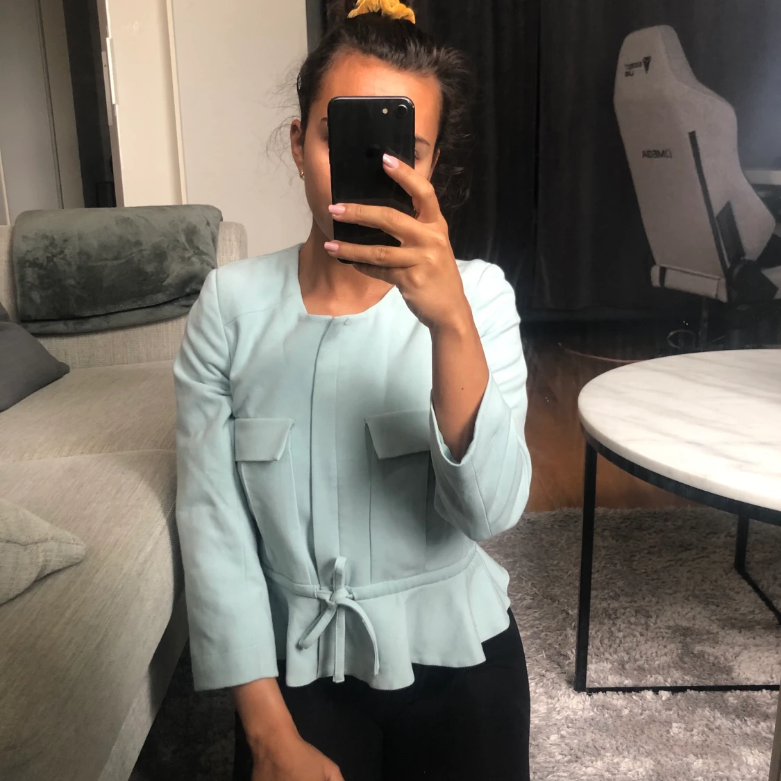 🦋3 FÖR 2 PÅ ALLT🦋 Så fin tröja i kavajstuk från Asos! Lite croppad med dragkedja+knytning och lite vadderade axlar. Storlek 32! Normalt begagnat skick, inga defekter🤍