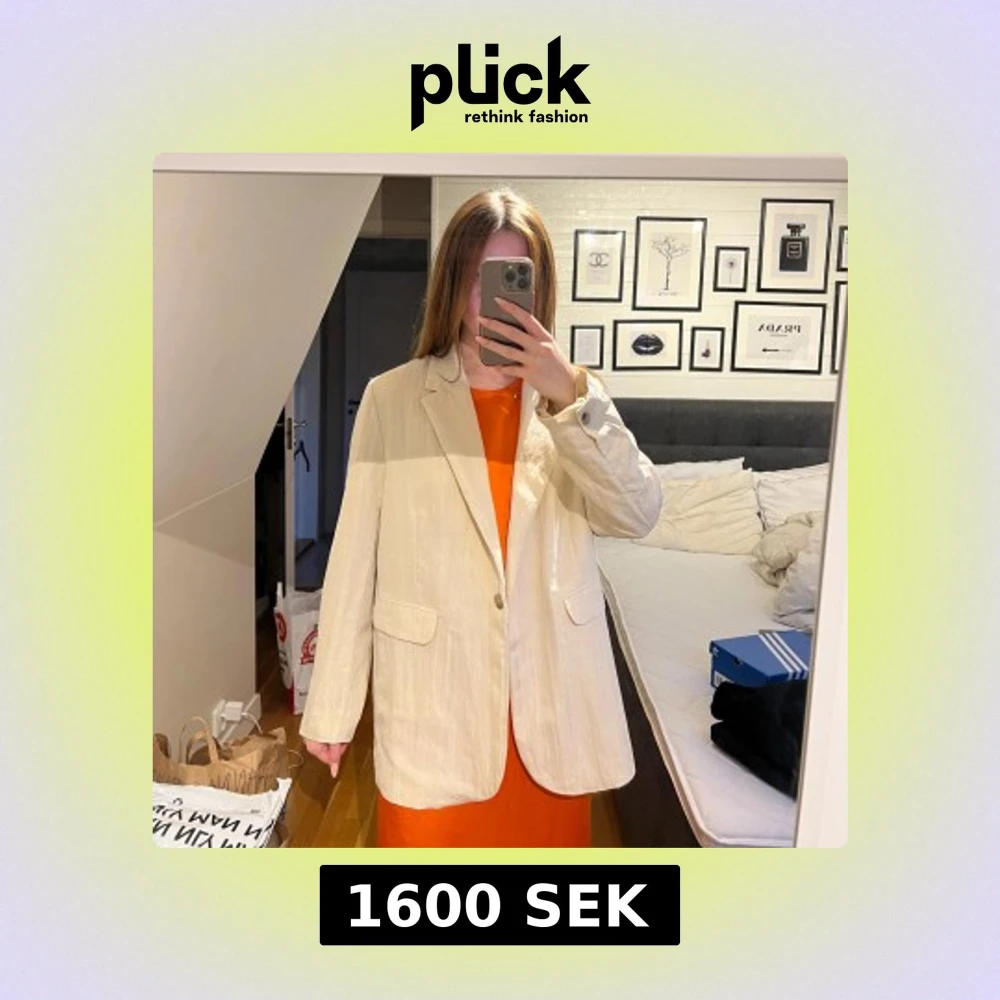 Helt ny och oanvänd beige kavaj från Samsøe Samsøe. Alla lappar kvar! Så fin, men för stor för mig. Storlek M, nypris 3000, men säljer för typ halva!!! Passa på, först till kvarn🫱🏻🫲🏼🥰 Den fina orangea klänningen under är också Samsøe Samsøe och den säljer jag med på min profil!