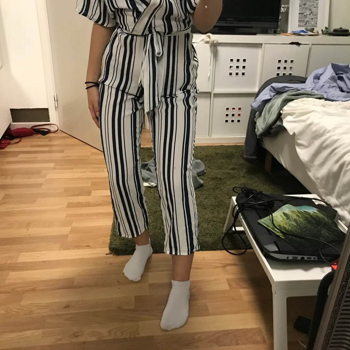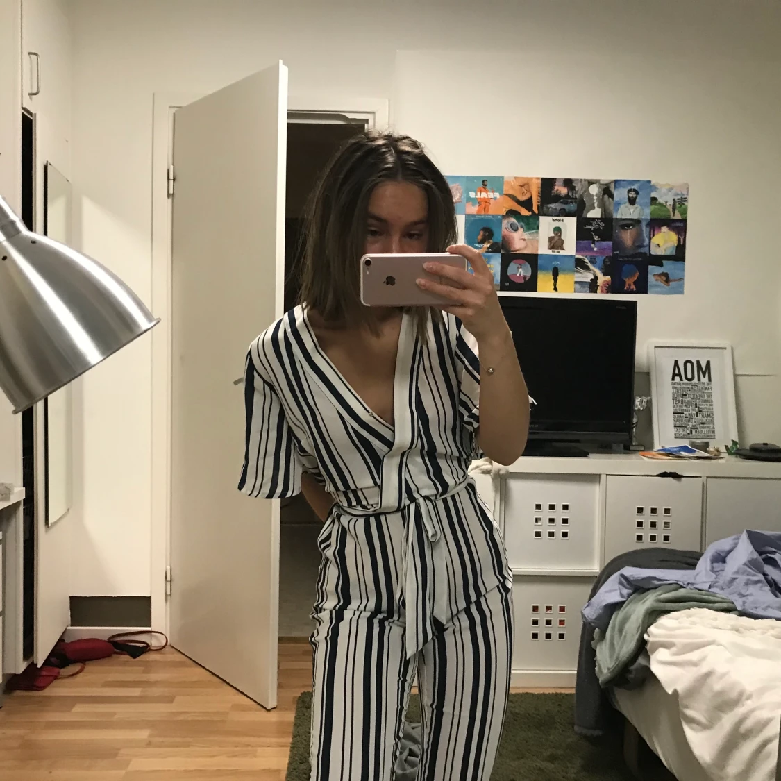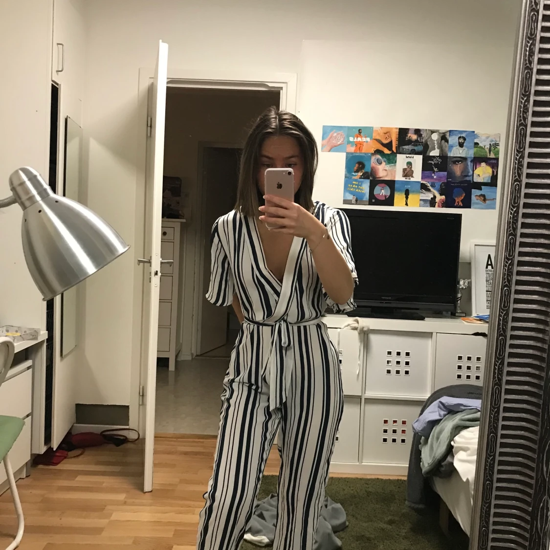 Helt ny (prislapp kvar) blå vit randig jumpsuit ifrån bikbok i storlek S. Super snygg men kommer tyvärr aldrig till nytta💗 köptes för 400 och säljs nu i samma fina skick för 200☺️