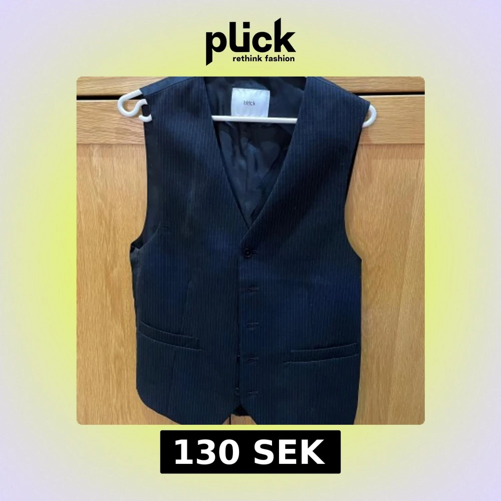Snygg svart kostymväst från Bläck med tunna vita ränder. Västen har klassisk v-ringning, tre knappar framtill och två fickor. Materialet är slätt och känns dressat, perfekt för att lyfta din outfit. Passformen är normal och designen är stilren.