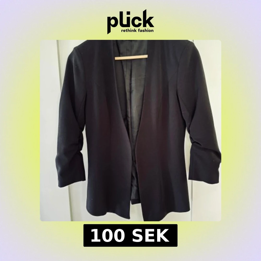 Snygg svart blazer i strl xs med 3/4 ärm och slimmad design. Inga knappar eller fickor. Inga defekter