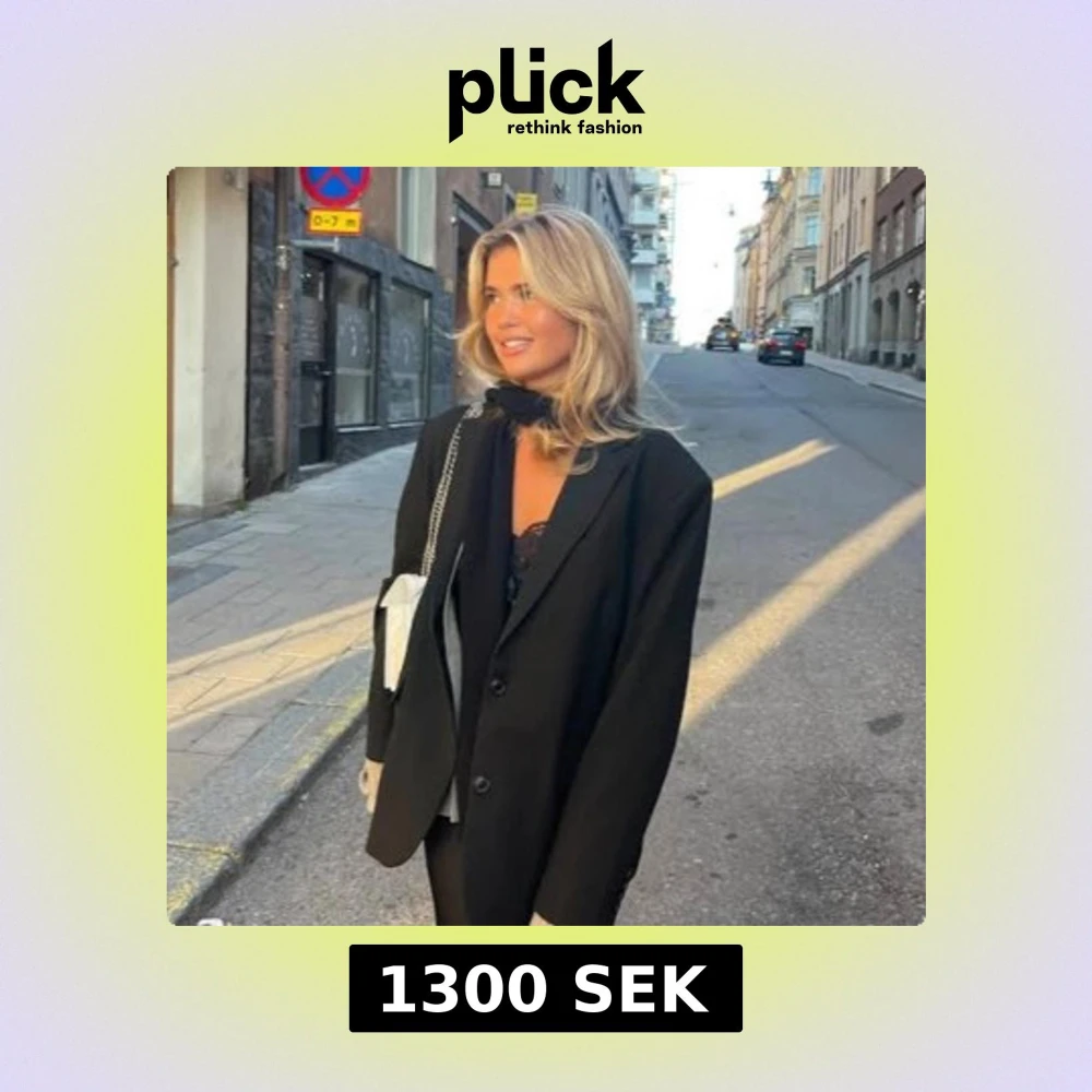 Ny med prislapp. Snygg svart kavaj i oversized modell från Djerf Avenue. Klassisk design med två knappar framtill, fickor med lock och slät krage. Nypris: 2000kr
