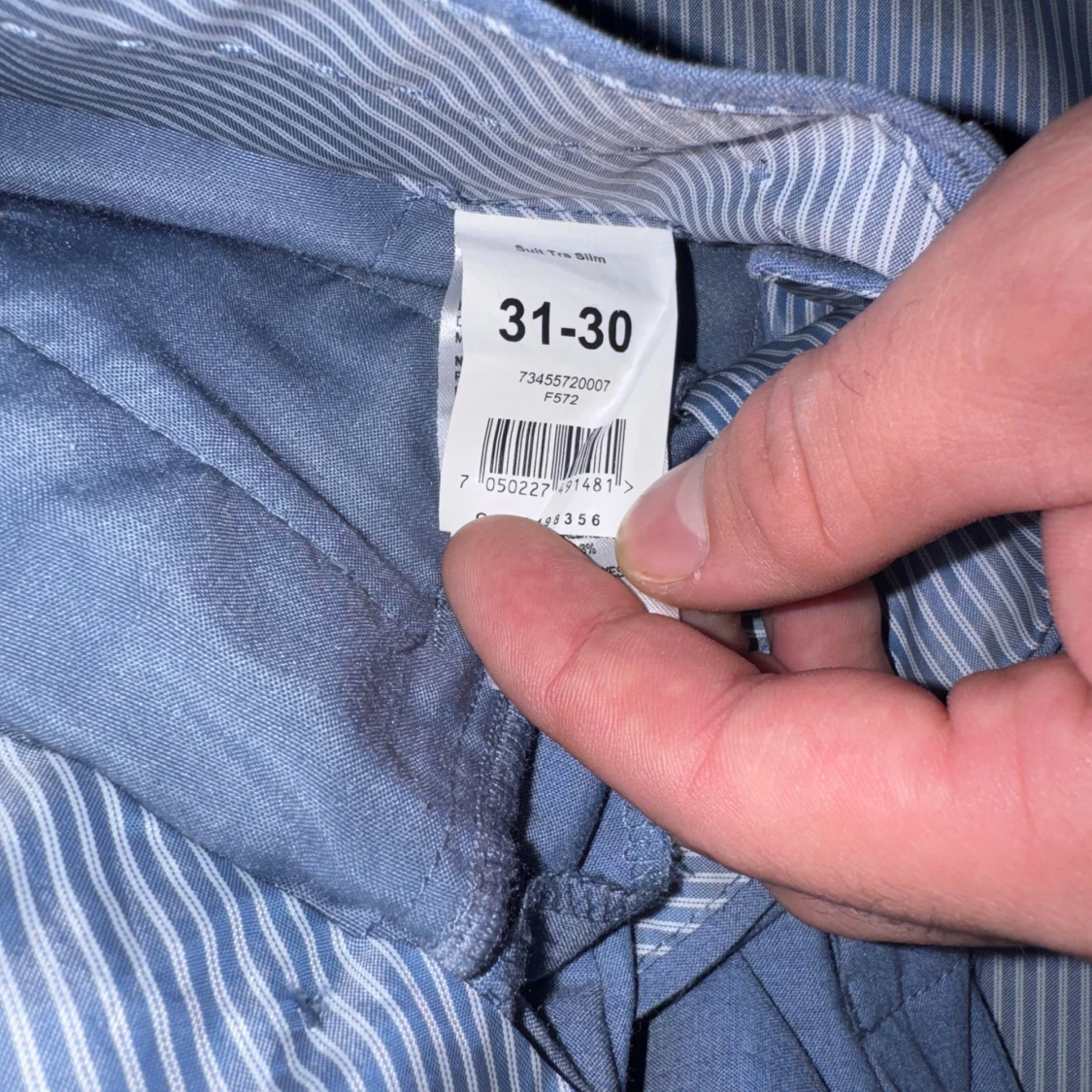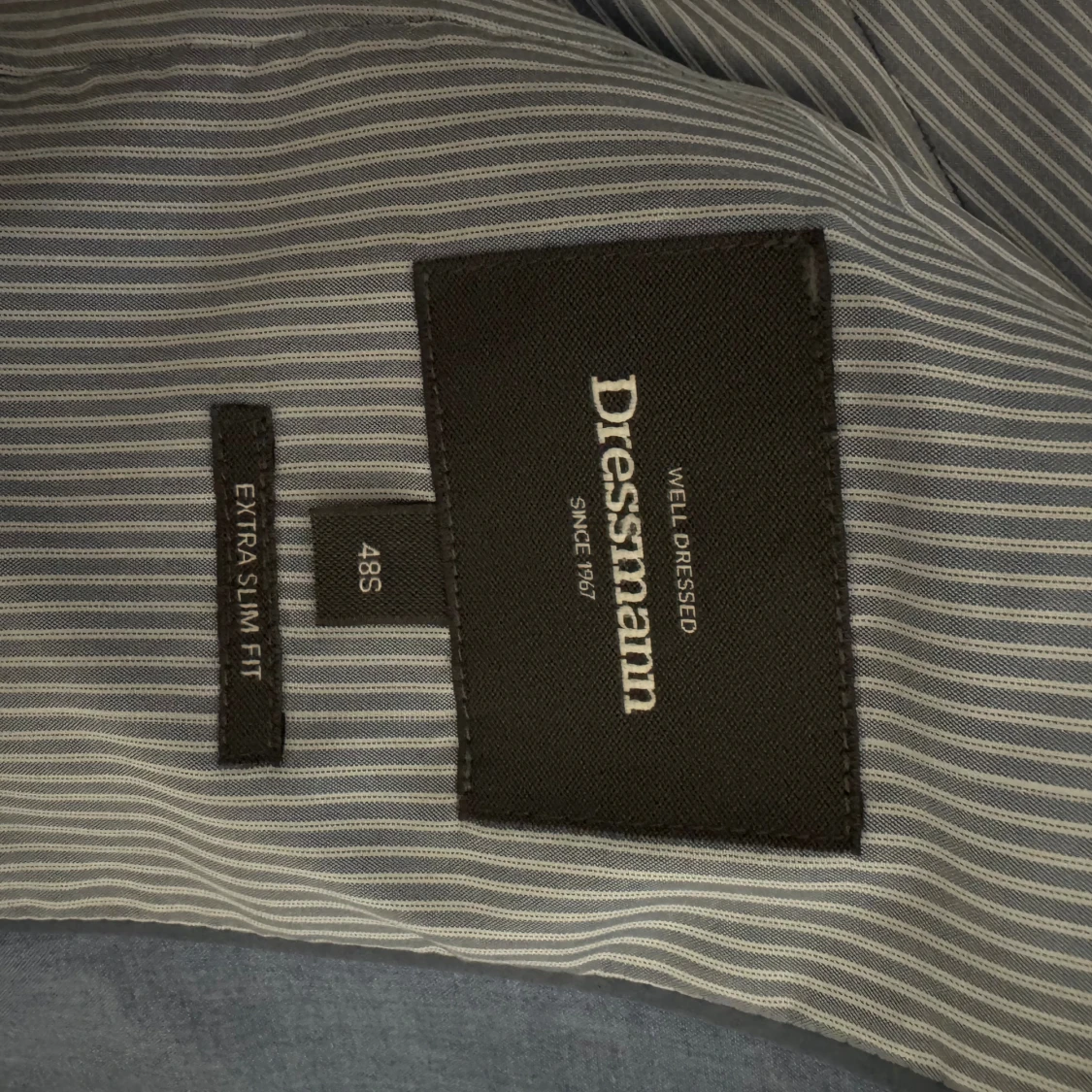 Snygg stålblå kavaj tillsamans med kostym byxor från Dressmann i extra slim fit. Kostymen har använts under bara ett tillfälle, sedan dess har den bara legat i garderoben. Perfekt för dig som gillar en modern och smal siluett. Jag är 172cm lång och jag väger ungefär 72-74 kg. Den sitter perfekt på mig.