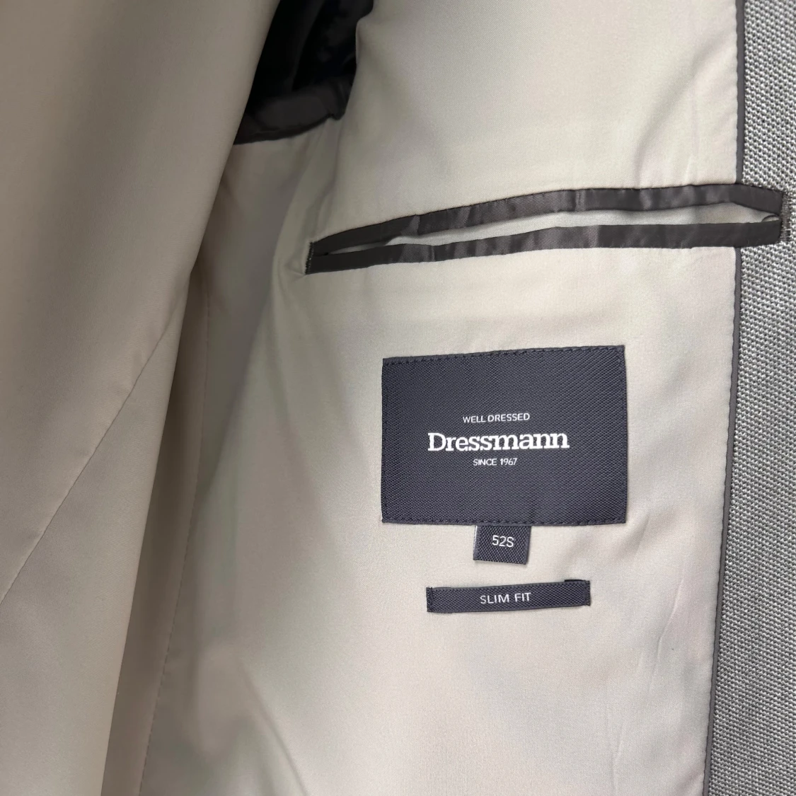Snygg ljusgrå kavaj från Dressmann i slim fit-modell. Kavajen har klassiska slag, två framfickor med lock och en bröstficka. Perfekt för dig som vill ha en stilren och modern look.