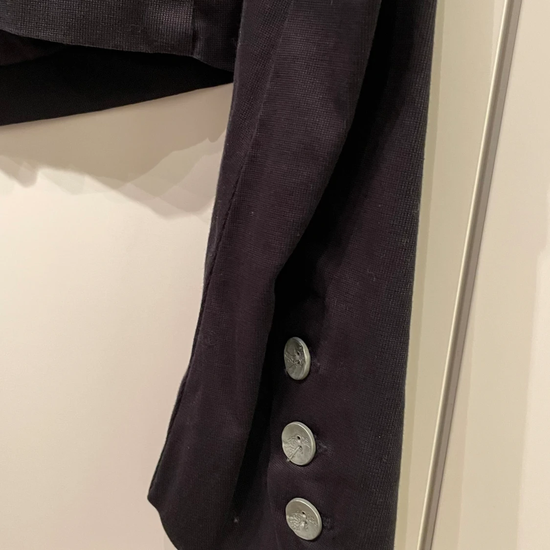 I nyskick, svart kort kavaj i bomullsmaterial, snygga knappar på armarna.