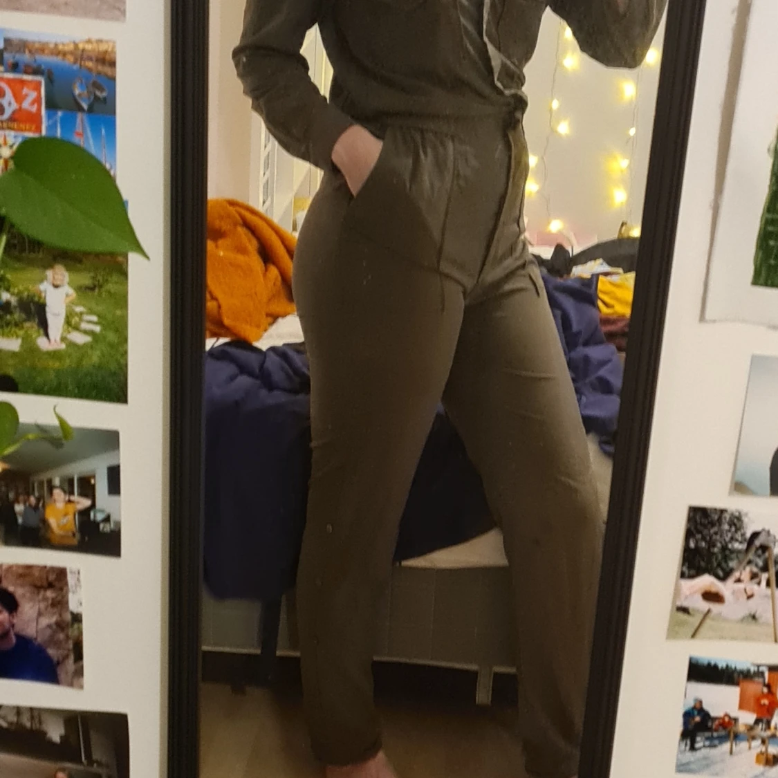 En av världens snyggaste jumpsuits! Älskar denna! ❤ Materialet känns riktigt, sitter rätt på rätt ställen, skön att sitta, gå och röra sig i. 🌟 Ser proffsig ut, resår i midjan, stängs med knappar. Man kan vika upp benen då det finns knapp (se bild 3). Perfekt för finmiddag, på jobbet eller en fin sommardag ❣☀️ Flitigt använd men den är precis lika fin som när den köptes! Garanterar!! Tidlöst och klassisk! ❤