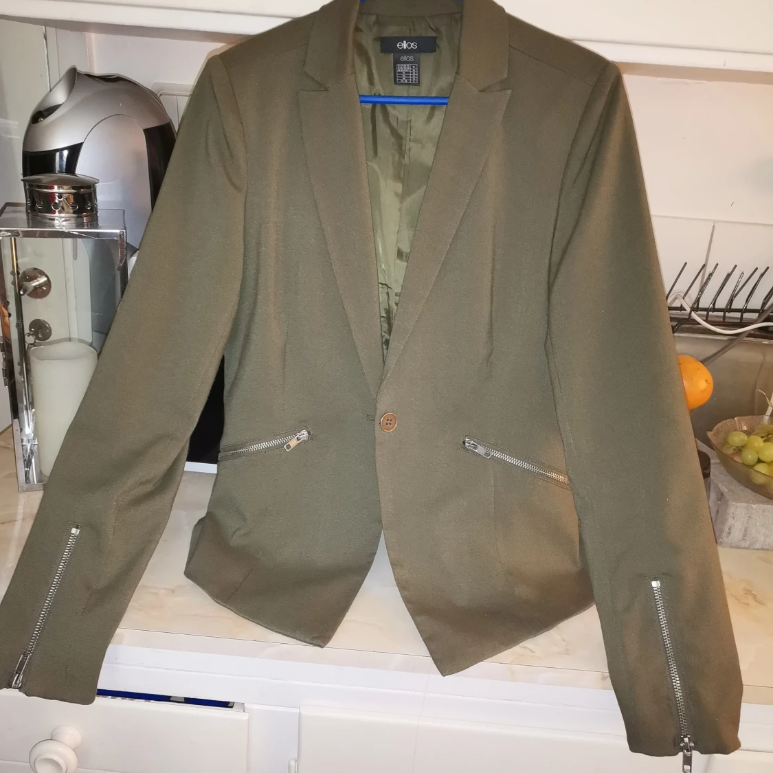 Aldrig använd,jätte fin på, figursydd.storlek 38. Färgen är mossgröna inköpt från Ellos