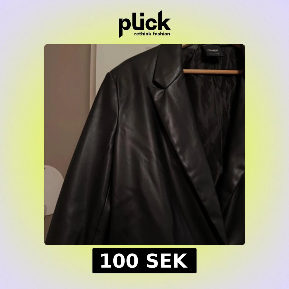 Kavaj i svart faux leather material från Pull & Bear. Innersöm som har gått upp (se bild), utöver det inga skavanker. Strl L men passar en M.