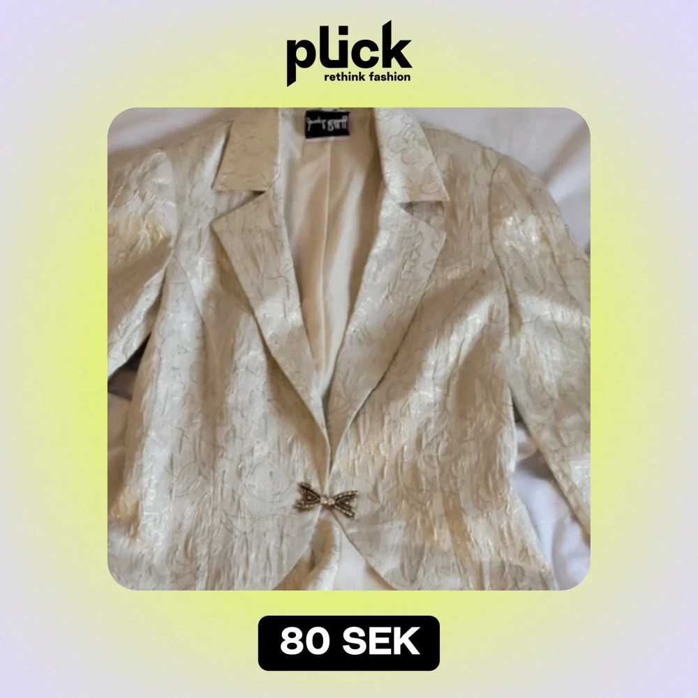 Jättrfin cremefäegad festkavaj med gulddetaljer och vackert spänne.