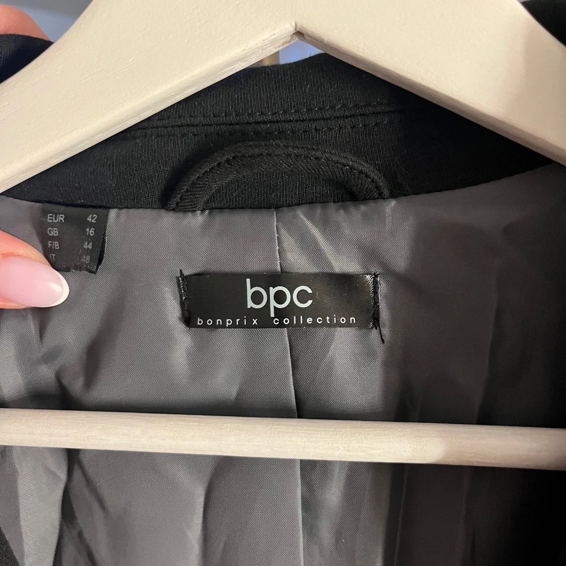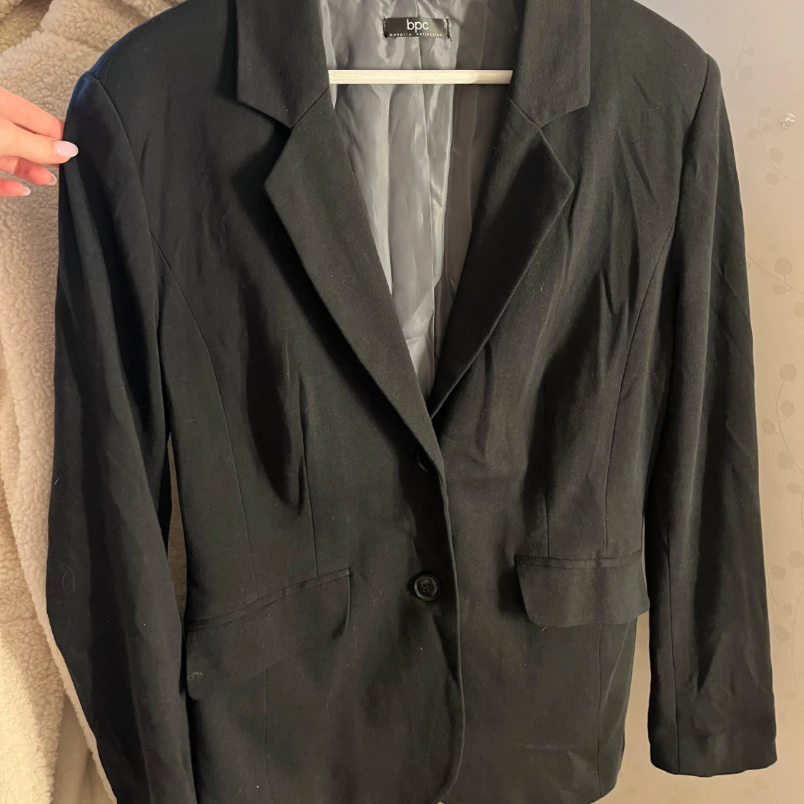 Vanlig svart figursydd kavaj många år gammal men ändå Fräch storlek 42 men passar även 40!
